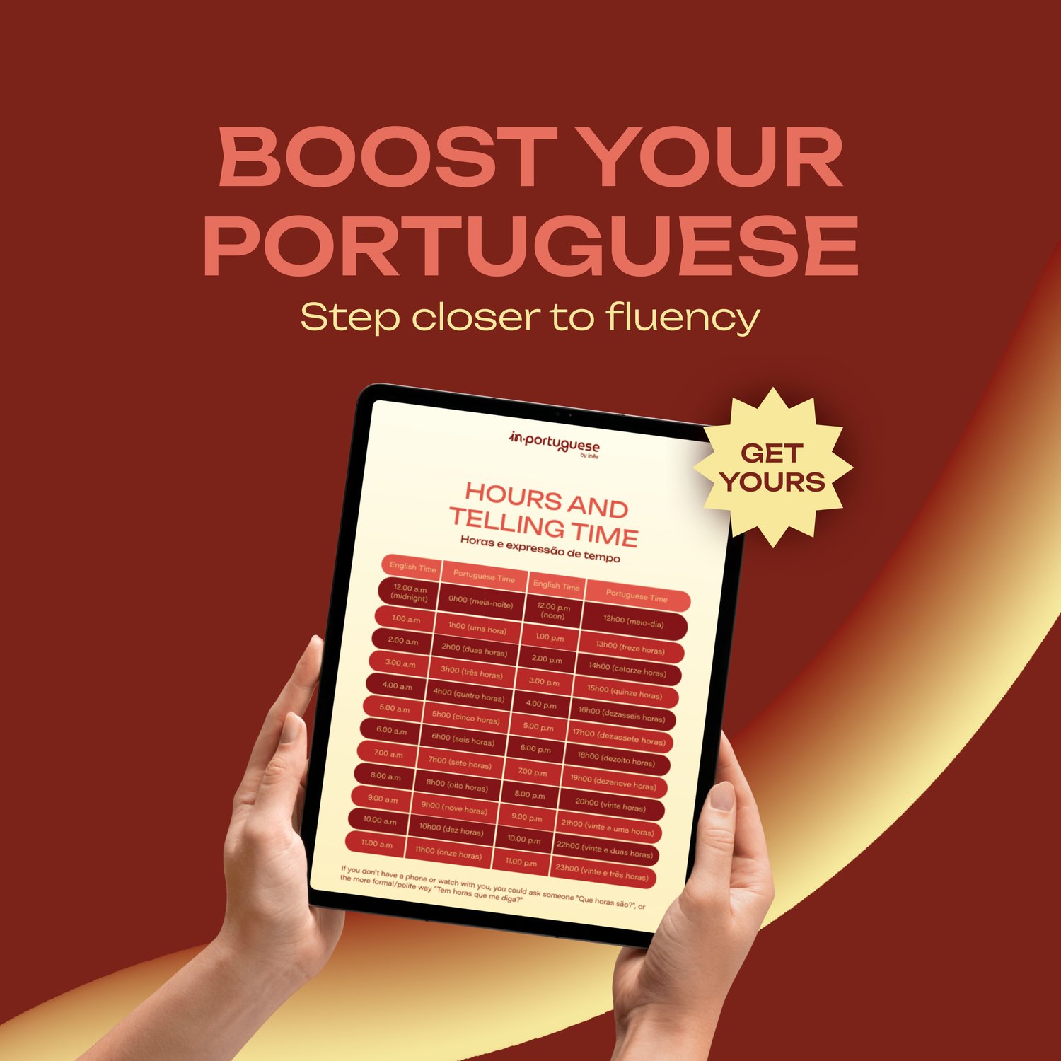 💡 Ready to improve your Portuguese? Get your PDF now and start mastering time! ⏳📚